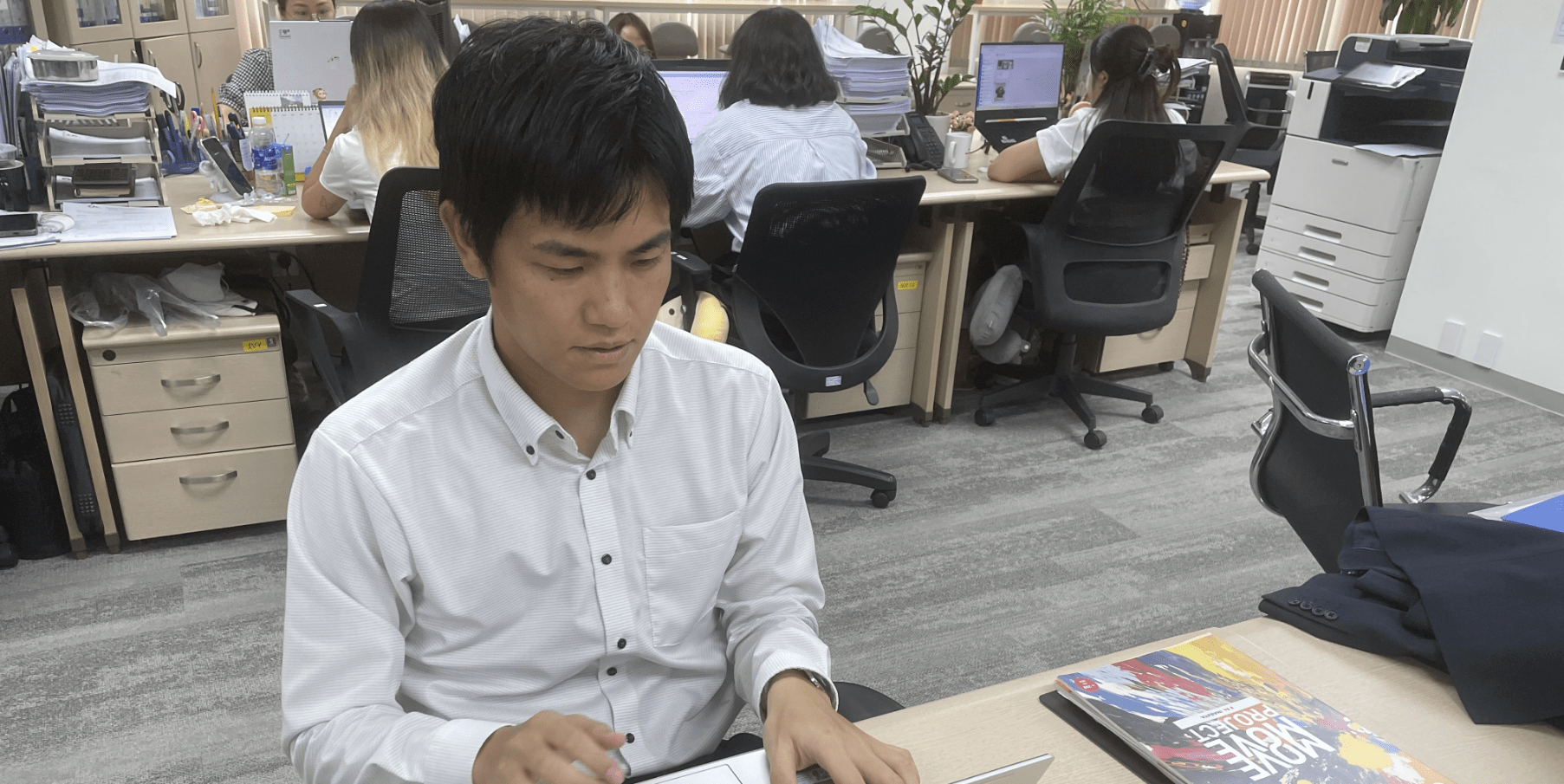 現在はベトナム北部にあるハノイ事務所で、主にプラスチック原材料の営業を担当しています。取引先は日系企業をはじめ、ベトナムローカル企業や中華系企業など実にさまざま。そんな幅広いビジネスパートナーと関われるのは、この仕事ならではの醍醐味だと感じています。もちろん、日本とは常識や価値観が異なる分、予期せぬトラブルに直面することもあり、タフさと柔軟な対応力は欠かせません。入社当初は「うちの営業は“足で稼ぐ”が基本。泥臭いよ」なんて言われたものの、もともと人と話すことが好きなので、お客様のもとに何度も足を運んで信頼関係を築いていく過程に、むしろやりがいや楽しさを感じています。その積み重ねが実を結び、2023年には嘱託採用を経てキャリア採用へと登用されることに。今はこの転機を新たな成長のチャンスと捉え、より大きな成果を目指して取り組んでいます。