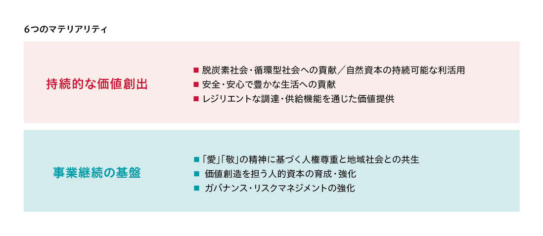 当社では、2022年に特定した6つのマテリアリティを、2つの大きな枠組みでまとめています。その1つ目は「持続的な価値創出」であり、環境関連ビジネスの売上高を、2027年3月期までに1,000億円に伸長させる目標を掲げています。すでに述べたように、エネルギー・電力分野のビジネスは、成長の機会があちこちにあります。言うまでもないことですが、これらのビジネスはGHG排出量の削減や気候変動対策への貢献とも両立するものと考えています。同じく「持続的な価値創出」というマテリアリティに沿って、「稲畑産業グループ 持続可能なサプライチェーン方針」を、2024年11月に制定しました。また、2024年度は法令遵守や品質管理等の観点から、化学物質規制管理の強化に資する諸施策を実行しています。「商社」という特性上、サステナビリティに関するリスクは限定できると捉えています。今後は「なぜ限定できるのか」という根拠を、諸施策の成果を用いてしっかりステークホルダーの皆さまに説明していきたいと考えています。