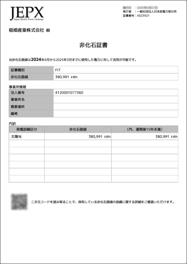 GHG排出量(Scope2)削減目標達成に向け、2024年度は単体および国内連結子会社11社の電力使用量のほぼ全量に相当する非化石証書を購入し、再生可能エネルギー電力を導入しました。その結果、国内におけるScope2のGHG排出量は、ほぼ実質ゼロとなりました。