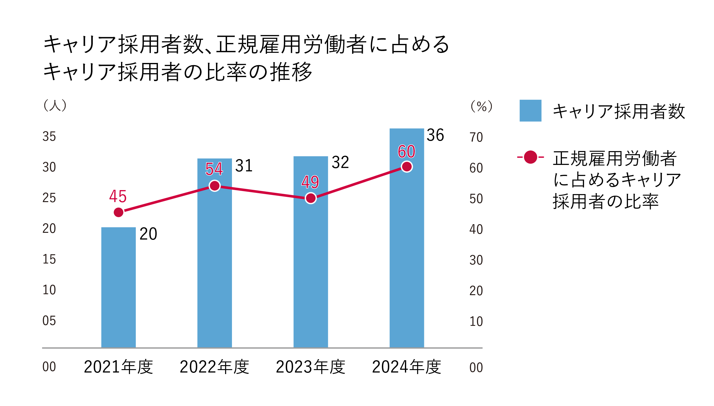 ②キャリア採用比率 | 60% | ○ |
